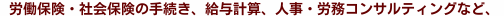 業界最先端最高品質のソフトを導入し、インターネット上でデーターのやり取りができるWebシステムをご用意いたしました。 総務人事労務ご担当者様の弊社への事務手続きの連絡はもちろん、進捗情況確認、社員台帳閲覧、勤怠管理利用、就業規則閲覧の他、社員様も、ご自身の給与/賞与明細書(伝言板表示付き)閲覧、社会保険・税制にかかる情報の閲覧や、有給休暇申請などをWeb上で自由にご使用できます。 また、官公庁の届出を電子申請にて積極的に行っていきます。モバイル(小型パソコン)で持ち運び自由ですので緊急時には企業様に出向き、簡単に最速で官公庁への届出が可能です。