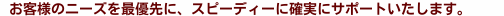 | | | 手続きのひとつひとつに、将来にわたって重大な意味のあること、担当者様のうしろには、大切な社員様がいらっしゃること、さらにその先にはご家族様がいらっしゃるということ、そのような重要な手続きをお任せ頂いていることの責任の重さを胸に、お客様のご要望に最善の努力で向き合い、ともに成長して行けることを最上の喜びといたします。 | |